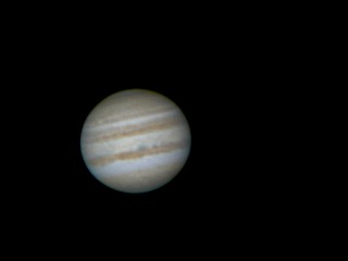 Here's a Jupiter image from the second night out. Note that it was taken with a 5-inch telescope in rather rough air. Specifically, I used a Celestron 5 and a 2x Barlow, which still gave a quite small image; a 5x Barlow would have been welcome.