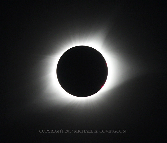 This is a very preliminary rendering of a single exposure taken at Hiawassee, Georgia, with a Canon 60Da camera, a Canon 300/4 telephoto lens at f/10, and an exposure of 1/80 second at ISO 800.