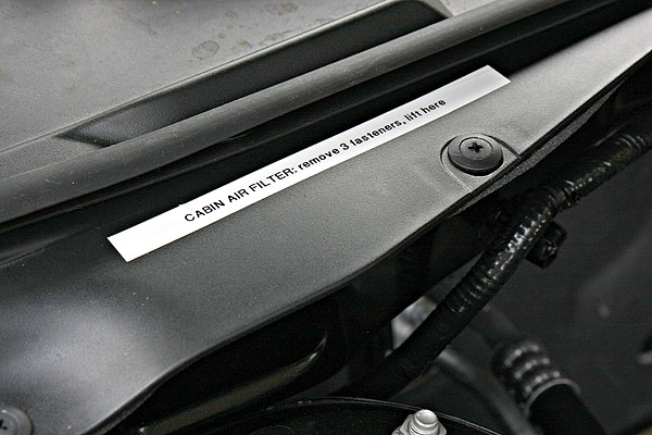 Since everything I do leaves a trail of documentation, my last step was to add a label, to clue in any future mechanics that the car has a cabin air filter and that it's easy to get to: